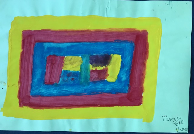 Sooooo, I resigned my job at the Y, and became a secretary at Columbia Teachers College in order to get tuition-free credits in Art Education. That done, I moved to Philadelphia, where I taught art at an elementary school in a diversely populated neighborhood. The most rewarding part of my teaching was seeing the uniqueness of each student’s noticings and how they chose to express those noticings. I remember a first grader, who re-lived his Halloween trick-or-treating of the night before. After he had experienced the whole evening in words and in paint strokes, he ended up with a paper largely covered with a muddy color, but he had found a way to recall each important part of the experience as he moved his brush. The incoherent picture had helped him find his voice.