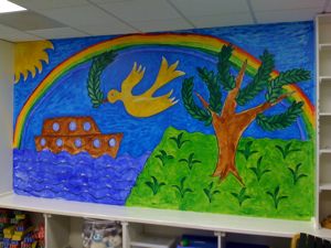 This week, the congregation gathered in the Nursery to bless the mural. The children showed us the parts they had painted, and told a little of what it meant for them. Due to the nature of this Word, no text is available.