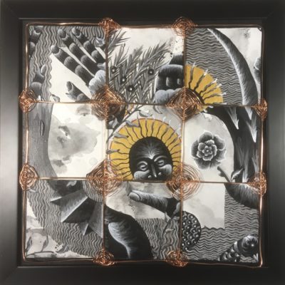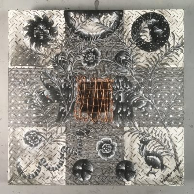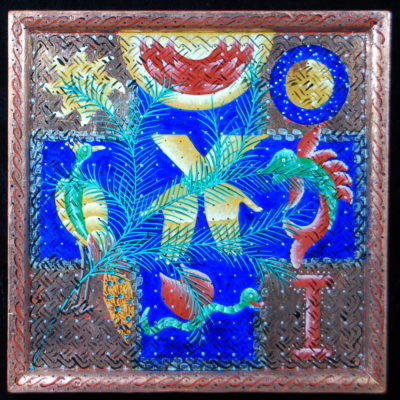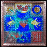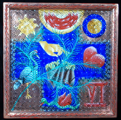 In my own work, I am attempting to evoke this sense of eternity, of the divine presence, that I find in these traditional artforms, as well as in the gleam of flickering candles, or in a night sky filled with stars. As an analogue to my belief that every time and place participates in God’s self-revelation, I combine elements from the icon tradition of the Eastern branches of Christianity; the elaborate knot work found in Celtic artifacts; the space-filling patterns of Islamic tiles; folk motifs from Latin America, Africa, and Asia; and contemporary notions about art. The resulting paintings are intended as an offering into the life of the Body of Christ, my own prayers made visible as an invitation to others.