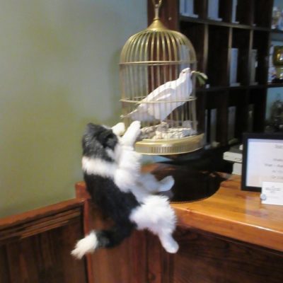 (Slide 11) Here are some shots of the lobby—a cat trying to kill the peace dove,