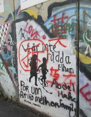 After seeing this museum, our family walked around some more—and some of the stencils were profound. Look at the peace dove perched on the dynamite plunger, with the child nearby.