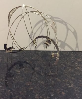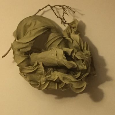 Recently, the conversations with the forces that guide me, and my interactions in the world, have emerged as pieces about my recovery process from abuse, the rampant injustices in the world we live in, and conversely, about hope and trust. Sometimes, the conversation is about simple beauty. There is an important side conversation going on, hopefully engaging the viewer, with earth justice. It is intentional that I make liberal use of found, recycled objects, invasive plant species, and garden and produce waste.