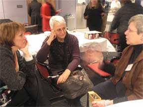 Sandra Miller (R) talks to mentors.