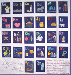 During Advent, the children at Seekers Church made an alphabet quilt that tells the story of the birth of Jesus of Nazareth. The children who made the quilt were Brittany, Beatrice, Julian, Kemonie, Oslin, Henry, India, Makayla, and Tommy. They had help from Jean Adams, Leslie Smith, Sharon Lloyd, Trish Nemore, Brenda Seat and other Seekers. Lauren and Marian Seat lent a hand as well.